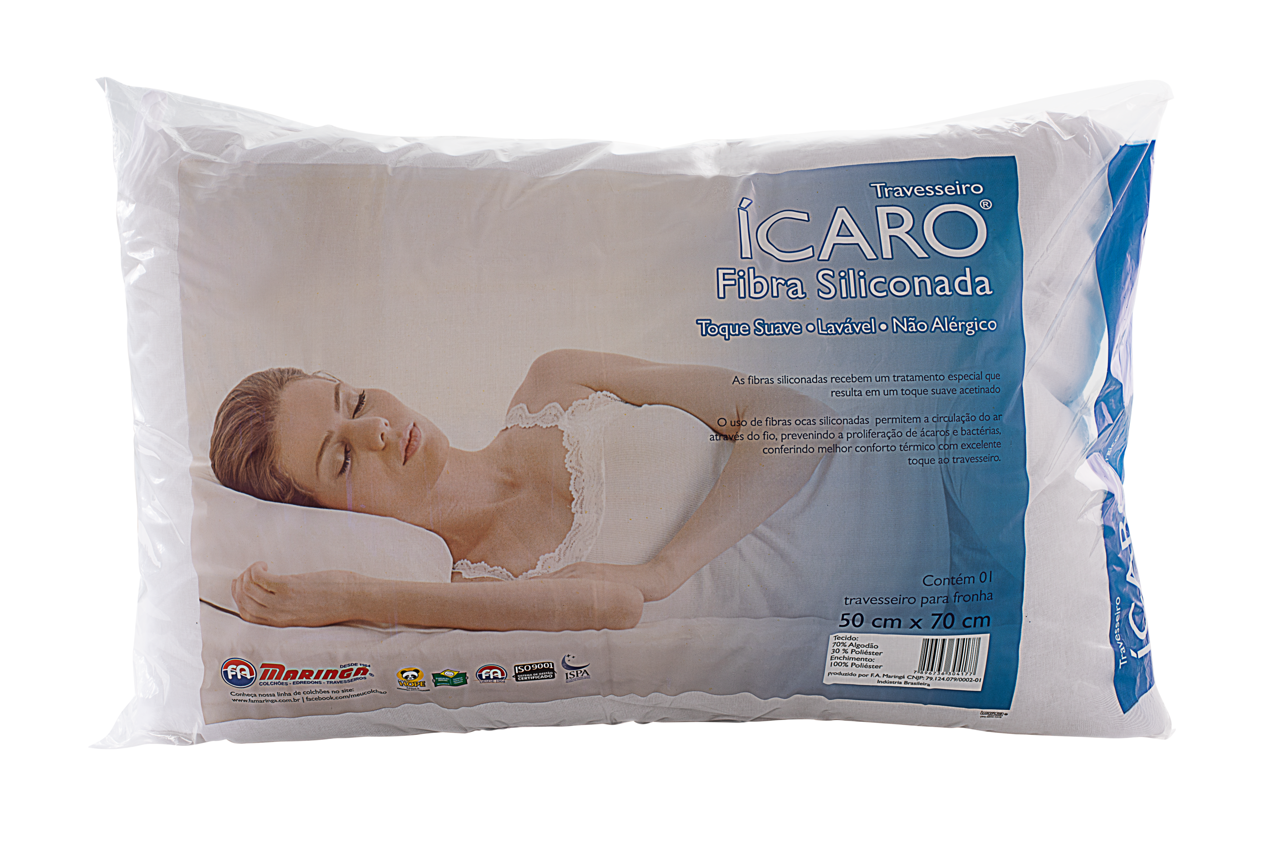 Conforto com toque acetinado e proteção total. O modelo Ícaro utiliza fibras ocas siliconadas que garantem ventilação contínua, frescor e barreira contra alergias.