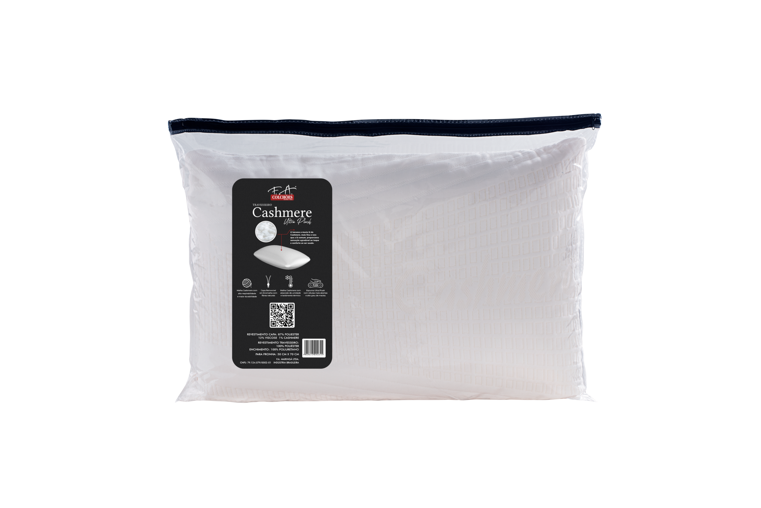 Luxo e maciez com fibras naturais de Cashmere e espuma Ultra Plush. Este travesseiro oferece um toque sedoso incomparável, excelente regulação térmica e o suporte ideal para um descanso profundo. Inclui capa removível para fácil higienização.